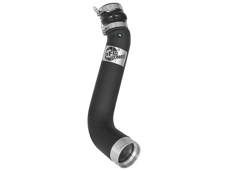 This BladeRunner Charge Pipe kit delivers more flow and is more robust to handle higher horsepower and boost than the plastic factory Charge Pipe on the 2017-18 GM L5P diesel. TIG-welded and designed from aircraft-grade, mandrel bent aluminum tubing, the BladeRunner I/C tube features factory mounting locations, quality hardware and 5-ply silicone couplings for a secure, hassle free installation. Flow and Performance: This cold side tube is constructed of 3-1/2″ mandrel bent, powder coated aluminum tubing for maximum flow and performance. The smooth transition bends decrease turbulence and minimize pressure loss, increasing horsepower, torque and lowering EGT’s. Featuring one (1) 1/8″ NPT port for connecting a pressure sensor or water methanol injection and maintains the factory air temp sensor. Perfect Fit: Installs on the cold side to transfer cooled air smoothly to the engine for better performance. Utilizes the factory mounting locations to provide stability for a hassle-free installation. This kit also includes a factory-style quick connect adapter made from 6061-T6 billet aluminum with an O-ring seal for a quick and simple install. Quality Hardware and Couplings Included: Includes high quality stainless steel spring-loaded T-Bolt clamps and heavy-duty 5-ply polyester reinforced silicone couplings pressure tested to 200 psi for long lasting strength and durability. Custom Appearance: Finished in wrinkle-black powder coating and badged with a unique aluminum laser-cut aFe Power logo welded on for a custom look.