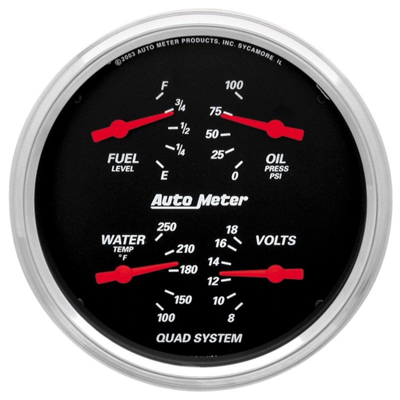 Autometer Designer Black 5in Quad Gauge – Fuel Level / Oil Pressure / Water Temperature / Voltmeter