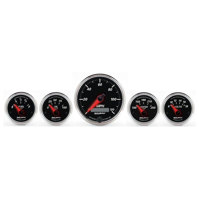 AutoMeter has brought together the most popular gauges into a simple kit. The kit includes a speedometer, water temperature, oil pressure, fuel level, and voltmeter. All senders included where applicable.
