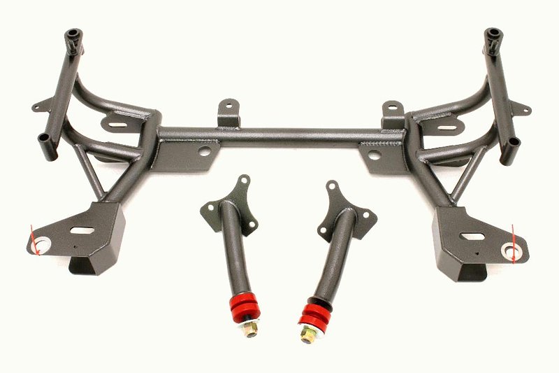 Reduce weight, increase frontend rigidity, and swap a Small-Block or Big-Block Chevy engine into your F-body with a Tubular K-members from BMR Suspension. BMR Tubular K-Members are designed to provide a lightweight alternative to the heavy and bulky factory K-member. Manufactured from 1-5/8-inch x 0.120 wall and 1-1/4-inch x 0.095 wall DOM tubing, BMRs K-members give you a lightweight, extremely strong K-member. Every BMR K-member is 100-percent bolt-in and requires no modifications for fitment. The K-members are built with provision for either factory or manual steering racks.Designed for street performance, drag race, and road race applications, BMR Tubular K-members drop weight and add loads of structural rigidity. BMRs unique K-member design features integrated frame stands that replace the factory cast iron frame stands. This additional weight reduction allows us to use larger diameter tubing and thicker mounting plates for additional strength over other companies K-members. When combined with BMRs upper and lower A-arms, a minimum weight reduction of 42 pounds is common. With other lightweight frontend parts, weight reduction of up to 100 pounds is easily achievable. The K-member also comes with specially designed engine mounts allowing you to easily swap a SBC or BBC engine into your Fourth Gen F-body with no fabrication.BMR Suspensions KM015 Tubular K-Member is available in black hammertone and red powdercoat for long-lasting good looks. Installation time is about 4-5 hours. Proudly made in the U.S.A.!