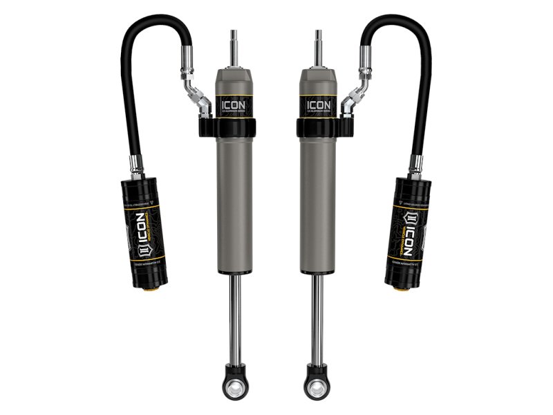 ICON Vehicle Specific (V.S.) 2.5 Aluminum Series shocks are designed and built to give your vehicle outstanding performance off-road and a smooth ride on the street. These shocks are configured specifically for each application in both length and damping tune. Like all ICON’S Shock Absorbers, V.S. 2.5 Aluminum Series shocks are 100% rebuildable and 100% revalveable. For piggyback and specific remote reservoir applications, ICON’S unique use of a 6061 billet aluminum manifold a few inches below the top cap of the shock creates an internal Bump Zone that when used creates an additional 20% of damping force. This additional force helps prevent harsh bottom outs and controls the suspension when compressing at high velocity. If you are looking for a more user defined tune, consider looking into the Compression Damping Control Valve (CDCV) shocks.