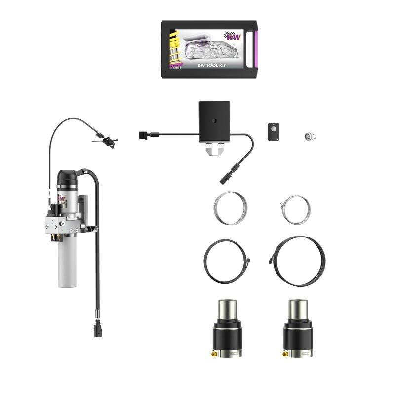 With the KW HLS lift system you can lift your sports car or lowered vehicle to safely negotiate obstacles such as speed bumps, railroad crossings, road construction, garage approaches and underground car parks. Depending on the version of the HLS lift system your vehicle can be hydraulically lifted either at the front axle or at both axles by up to 45 mm. This prevents accidental damage to your aero components, underbody protection or even oil sump. The lift system is available either as a vehicle-specific solution with or as a retrofit for your factory dampers depending on the type of car and the model. For a wide range of super cars and performance vehicles KW HLS is available as an application-specific solution. Included in the delivery is all the necessary parts for installation including the hydraulic lines & hydraulic pump adapted to your vehicle. All of the components will fit perfectly in your car. If you want to combine the HLS with your factory suspension or upgrade to our KW coilovers, the choice is yours. Alpina, BMW M, Manthey, Mercedes-Benz AMG, Novitec Rosso and many well-known international automotive companies place their trust in KW HLS systems and coilover kits.