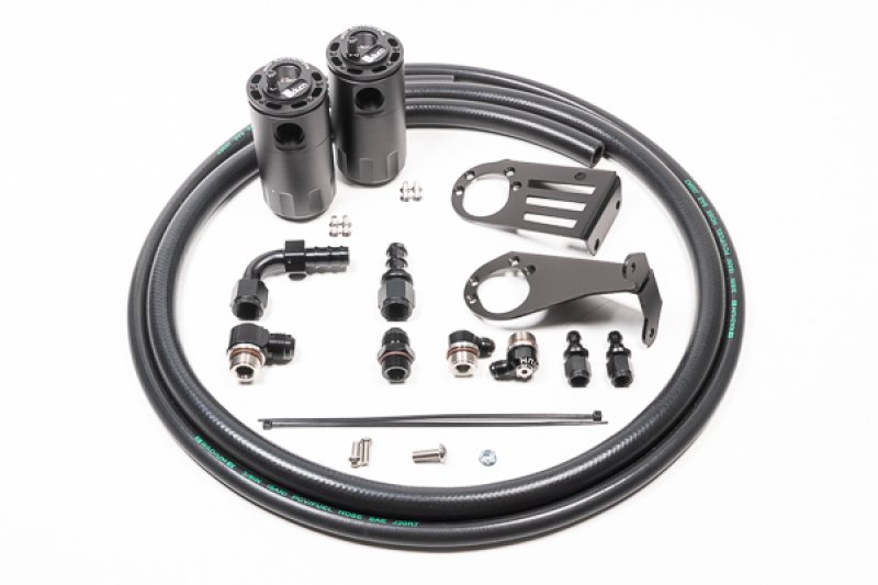 Dual catch can kit for the Nissan S15 Silvia/200sx. Catch cans interface with both the PCV hose and crankcase vent line. All parts included for an easy bolt-in installation. Includes Radium’s Fluid Lock catch can (patent pending).